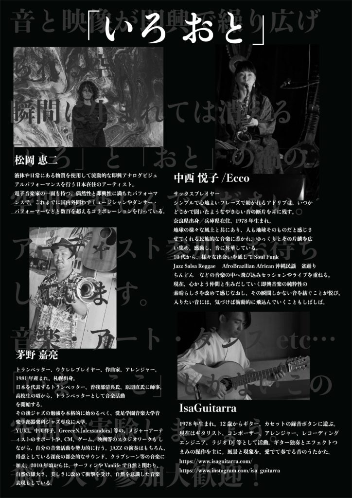 瞬間に生まれては消える「いろ」と「おと」の渦の空間を楽しんでください。